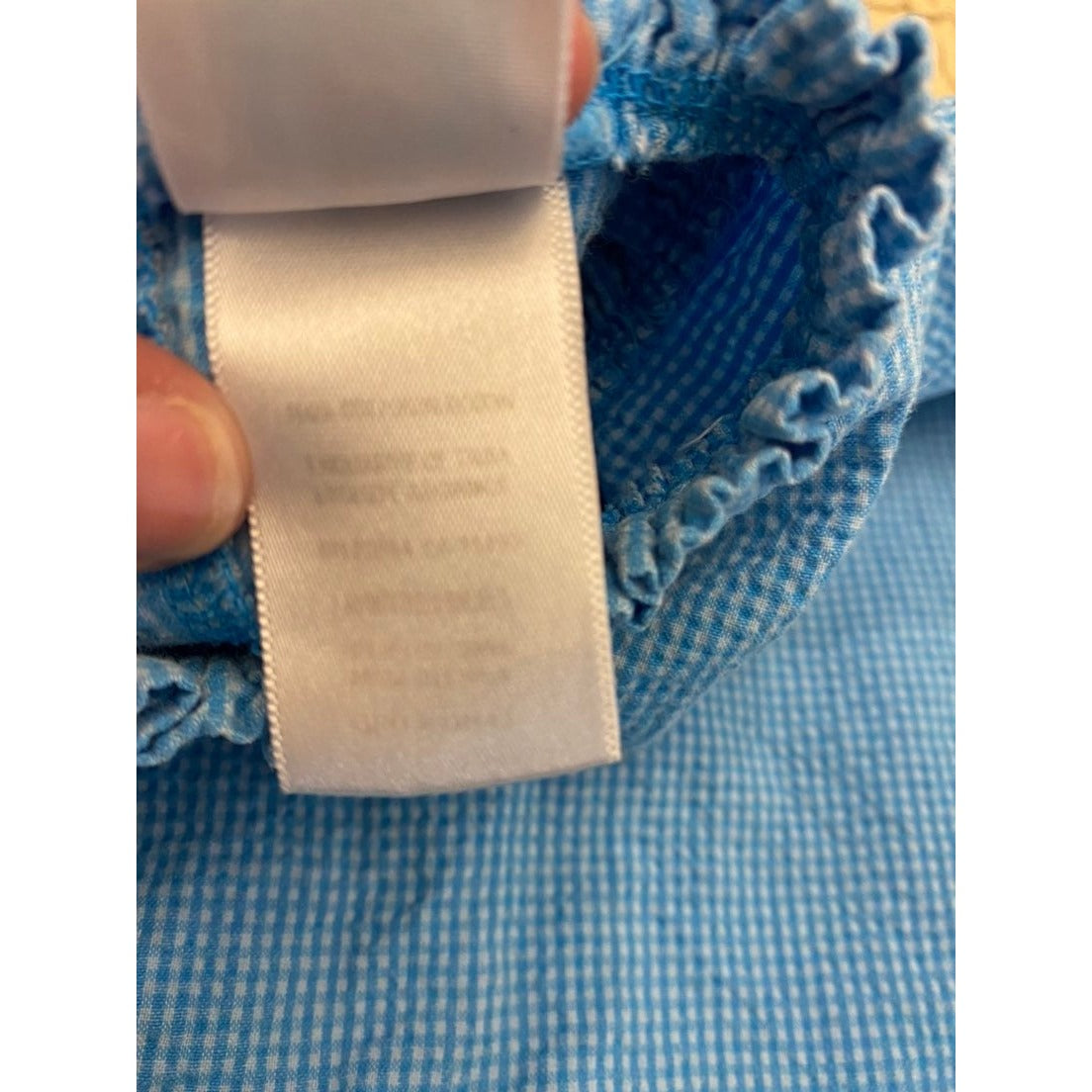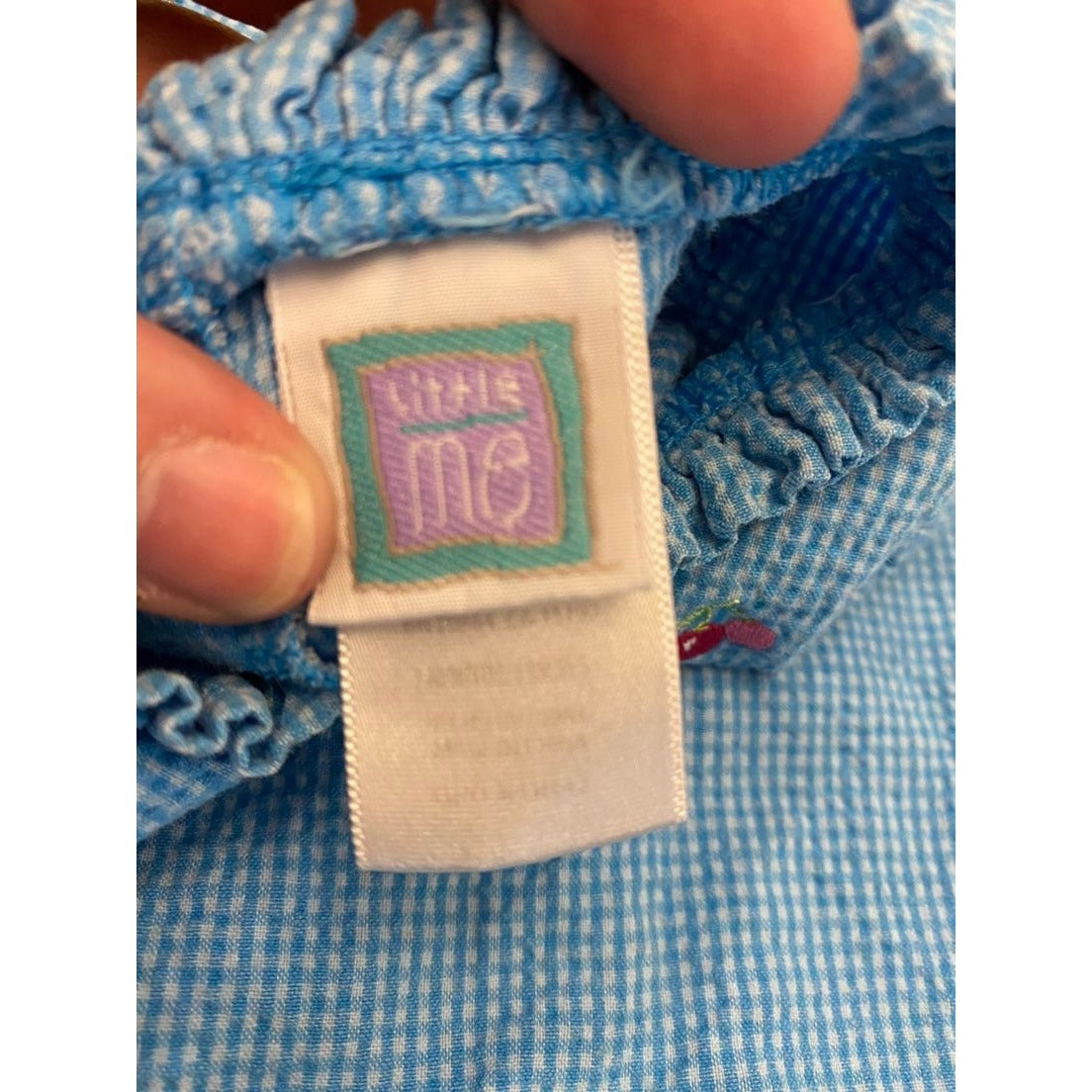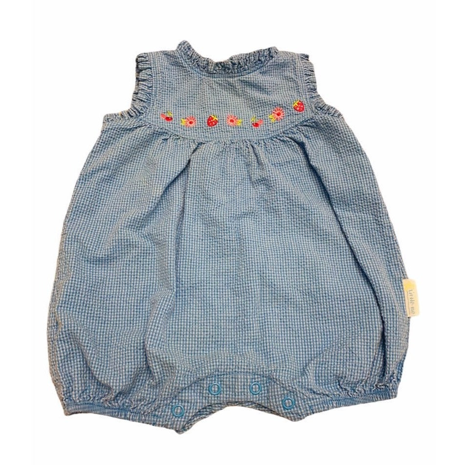 Blue gingham bubble with embroidered flowers